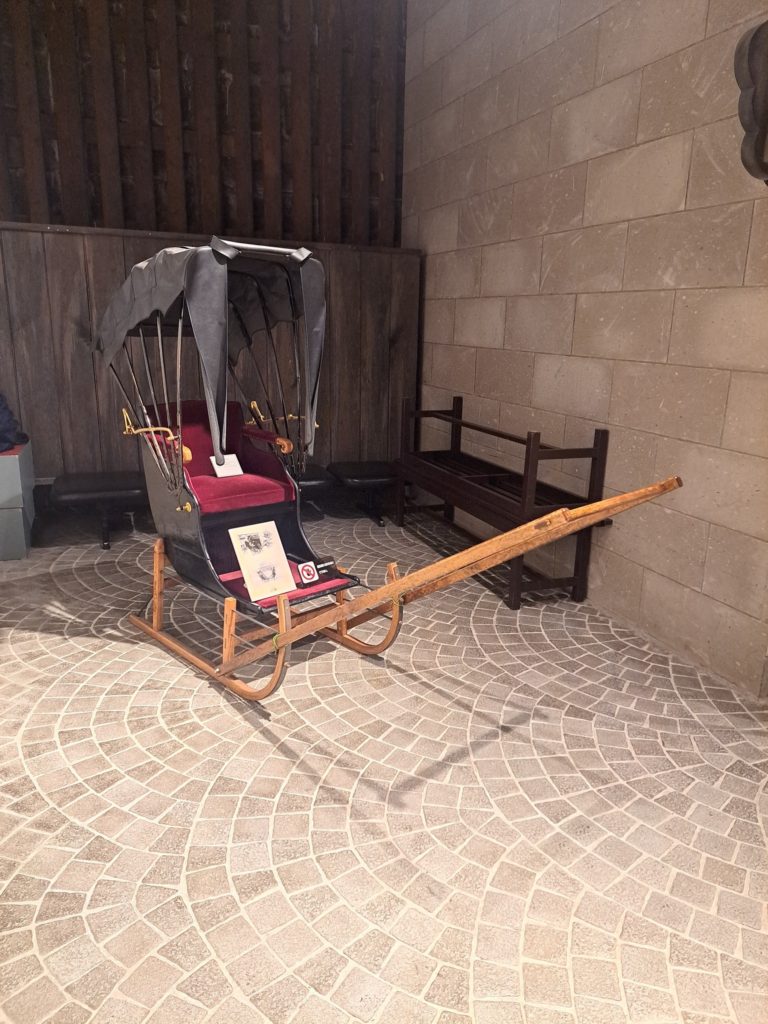 小樽の冬景色の1つであった人力橇は、運河館第一展示室奥で展示しているほか、同館中庭で体験することもできます。