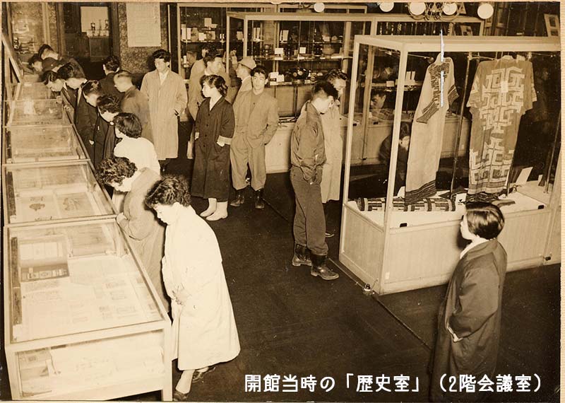 前回(博物館70年の歩み①)で記したように、昭和31(1956)年の開館時、展示の構成、資料の収集、展示はすべて、当時市内で活動されていた地域の研究者たちが行いました。それまで、地域史・自然史の資料は図書館で保管していましたが、書籍以外の資料はこのときに博物館に移管されています。しかし、展示資料はほとんどが借用もしくは寄託のものでした。